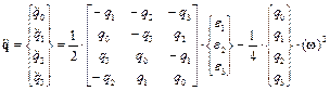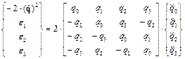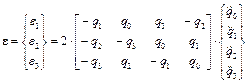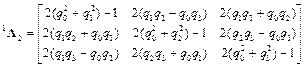 Свойство 2. Одновременное изменение знаков всех параметров Эйлера не изменяет ориентацию системы координат. Примем, что параметры Эйлера определяют поворот 2-й системы координат относительно 1-й системы координат при их первоначальном совпадении. В этом случае матрица поворота имеет следующий вид