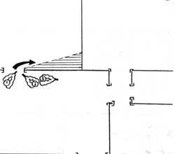 Члены группы могут оказывать друг другу поддержку во время вынужденных манипуляций с оружием. Неисправности и потребность в смене магазина периодически возникают в ходе боестолкновения, а способность вести огонь и (желательно) поражать противника должна поддерживаться постоянно. Отсюда потребность в прикрытии. Если кто-то из членов команды испытывает проблемы с оружием, то, не имея поблизости защитного укрытия, используя кодовое слово (например, «красный», «пустой», «прикрой»), призывает кого-то из товарищей его поддержать. Услышав кодовое слово, тот, кто расположен ближе, понимает, что напарнику необходимо покинуть зону поражения и при этом не ставить противника в известность о проблемах с оружием. Он заслоняет собой товарища и принимает на себя его зону ответственности. Вместе они перемещаются в укрытие. Третий прикрывает маневр и, в случае необходимости, ведет огонь по противнику. Когда неисправность оружия устранена, стрелок выкрикивает другое кодовое слово (например, «зеленый» или «работаю»), тем самым давая понять, что он вновь в строю. На приведённых ниже схемах представлены действия американских полицейских в квартире. Схемы воспроизводят ход проведения реальной боевой операции. Проследите перемещение группы по мере осмотра комнат и других помещений квартиры. Обратите внимание, что группа максимально сохраняет свою целостность, и никто из сотрудников не остается один в непроверенном помещении.