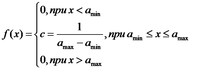 Функция плотности распределения По условию значения случайных величин распределены равномерно в диапазоне amin÷ amax. Для равномерного распределения случайной величины функция плотности распределения f(x):