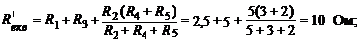 І1' = Е1 / R' екв = 10 / 10 = 1 А; U 245 = І1' × R245 = 1 × 2, 5 = 2, 5 В; І2'' = U245 / R2 = 2, 5 / 5 = 0, 5 А; І3 ' = U245 /( R4+ R5) = 2, 5 / 5 = 0, 5 А. 2 Визначаємо часткові струми І1", І2", І3" і е квівалентний опір Rе", вилучивши із схеми джерело з електрорушійною силою Е1 (рисунок 6.12):