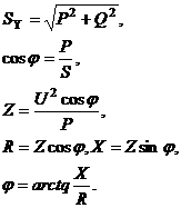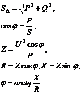 4 Згідно даних будуємо схему показану на рис.1 (Якщо лінійна напруга дорівнює 380 В, то однофазні споживачі будуть ввімкнені на 220 В тільки у випадку з'єднання їх зіркою. Трифазні споживачі вмикаємо трикутником, так як вони розраховані на напругу 380 В. Якщо потужність реактивна Q від'ємна, то в даній фазі ввімкнений конденсатор, якщо додатна – котушка індуктивності). 5 Визначаємо активні і реактивні опори для кожної фази (використовуючи нижче наведені формули): а) зірка б) трикутник