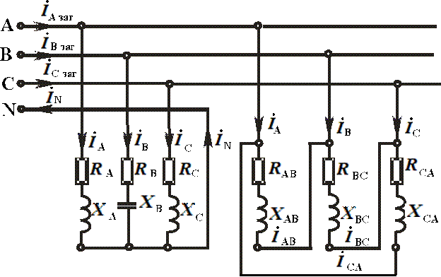 Рис.1. Для споживача з’єднаного трикутником: Фазні струми: