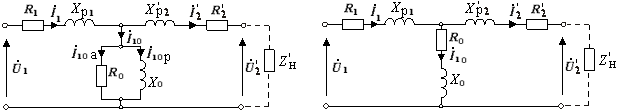 Для паралельної схеми: Визначаємо опори застосовуючи дані досліду короткого замикання: R 0 = U 210 / ∆ Р10; X 0 = U 10 / I10 р, де I10 р = I10sinφ, cosφ 10 = ∆ Р10 / (U 10 I10). ZКЗ = UКЗ / IКЗ; RКЗ = Δ РКЗ /І 2КЗ; Для послідовної схеми: R 0 = ∆ Р10 / I 210; Z 0 = U 10 / I10, Первинної обмотки: R1 = R'2 = RКЗ/2; Х1 = Х'2 = ХКЗ/2.
