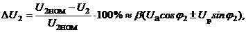 При цьому зміна напруги на вторинній обмотці у відсотках: