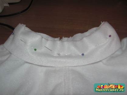 32. Наметываем завернутую бейку по всей горловине.