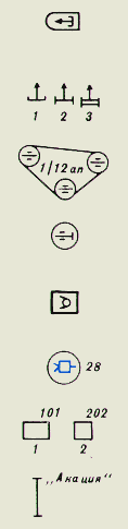 Последовательное сосредоточение огня с указанием условных наименований рубежей и номеров целей (сплошными линиями - рубежи, по которым планируется вести огонь одновременно, при двойном ПСО сплошными линиями соединяются цели на двух рубежах, при тройном на трех рубежах). Участки целей масштабные.