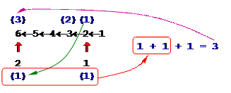 6) далее, для чисел 4 и 5 получаем 2 программы (после числа 3 нет «разветвлений» – подходящих красных стрелок), а для числа 6 – 3 программы, так как «подошло» еще одно разветвление (6 можно получить умножением 2 на 3), а для числа 2 мы уже подсчитали количество программ – оно равно 1: