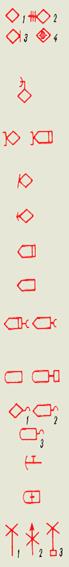 Последовательное сосредоточение огня с указанием условных наименований рубежей и номеров целей (сплошными линиями - рубежи, по которым планируется вести огонь одновременно; при двойном ПСО сплошными линиями соединяются цели на двух рубежах, при тройном на трех. рубежи и участки целей масштабные. Массированный огонь с указанием его условного наименования и номеров участков.