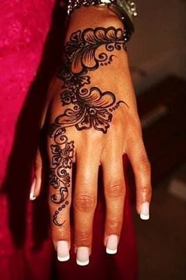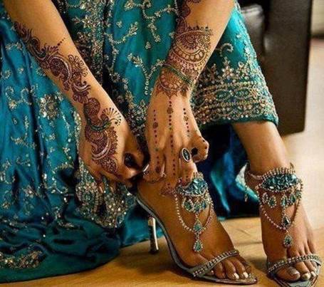 МЕНДИ - рисунок хной. В отличие от татуировки является временным украшением тела и держится около трех недель. Наиболее распространена в арабских странах, Индии, Северной Африке и Индонезии. Менди появилось около 5000 лет назад. Ещё в Древнем Египте знатные дамы украшали своё тело и ногти рисунком. В XII веке она закрепилась в Индии, став не только лишь украшением. Например, многие арабские женщины считают, что менди приносит счастье и защищает от неудач. Так за день до свадьбы (в девичник) невесту расписывают рисунком, а оставшуюся хну закапывают в землю, чтобы защитить брак и избежать неверности мужа. Менди означает силу любви в браке. Чем темнее менди, тем сильнее любовь. Красный цвет - цвет плодородия, власти. В рисунке используются только растительные орнаменты, они символически связывают женщину с природой, понятиями рождения, питания, роста, регенерации. Мехенди защищает от злых духов, несчастий, болезней и даже смерти.