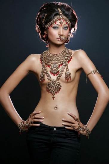 На индийской женщине может не быть одежды, но украшения будут обязательно. В культуре Индии все символично, все - метафора. Украшая видимое, материальное тело, индийцы выражают тоску по своей божественной природе. Для многих индусок красивая одежда - один из способов поклонения Богу. Изящно одетая женщина - олицетворение идеальной красоты и тайны, присущей природе и музыке. Каждая часть убранства оправдана и последовательно вплетена в общий узор символических форм и образов.