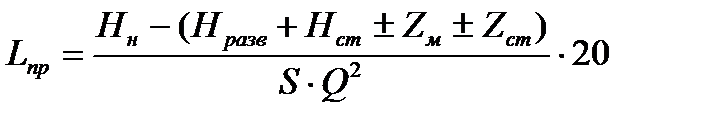 Lпр – предельное расстояние (м), Hн = 90÷ 100 м – напор на насосе АЦ, Hразв = 10 м – потери напора в разветвлении и рабочих рукавных линиях, Hст = 35÷ 40 м – напор перед стволом, Zм – наибольшая высота подъема (+) или спуска (–) местности (м), Zст – наибольшая высота подъема (+) или спуска (–) стволов (м), S – сопротивление одного пожарного рукава, Q – суммарный расход воды в одной из двух наиболее загруженной магистральной рукавной линии (л/с), 2) Определение необходимого напора на ПН (пожарном насосе): Нн = Nрук· S · Q2 ± Zм ± Zст + Hразв + Hст (м), где Nрук· S · Q2 – потери напора в наиболее загруженной рукавной линии (м),