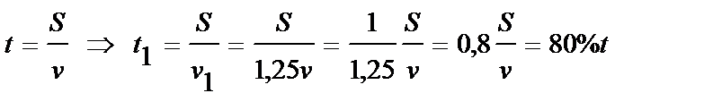 B - 100% A - x% Сложные проценты. Число A увеличилось на 20%, а затем полученное число уменьшили на 25%. Как, в итоге, изменилось исходное число? 1) A1 = (100% + 20%)A = 120%A = 1, 2A 2) A2 = (100% - 25%)A1=75%A1 = 0, 75A1 = 0, 75× 1, 2A = 0, 9A = 90%A A1 – A = 90%A – 100%A = -10%A 3) Þ Ответ: уменьшилось на 10%. Изменение величины. Как изменится время, если скорость движения увеличится на 25%?