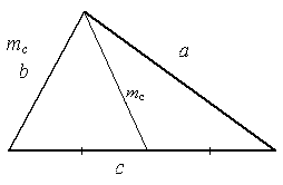 Точка пересечения медиан треугольника– центр тяжести. Точка пересечения высот – ортоцентр. Точка пересечения биссектрисс – центр вписанной окружности. Точка пересечения серединных перпендикуляров – центр описанной окружности. Медианы, проведенные из вершин A, B, C соответственно: ma, mb, mc