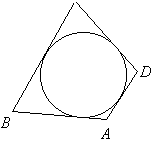 тогда и только тогда, когда суммы длин противоположных сторон равны: AD + BC = AB + CD.