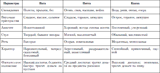 Три типа конституции человека (пракрити)