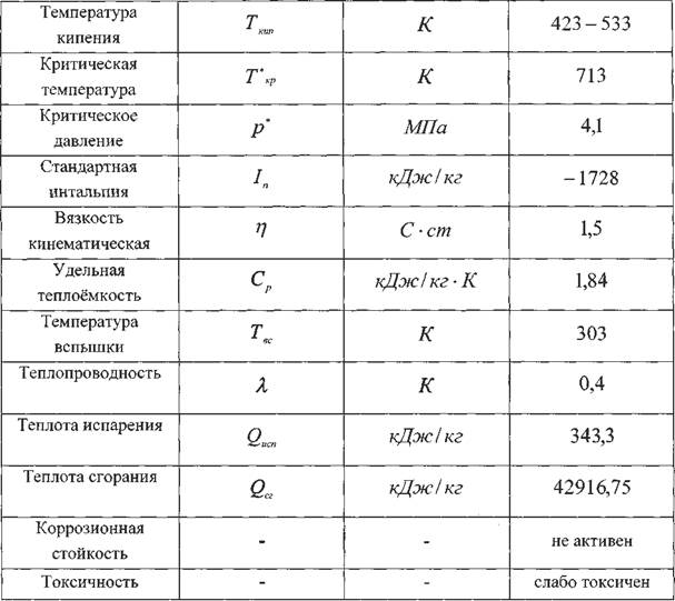 Таблица 1.2 – Основные характеристики горючего - керосина