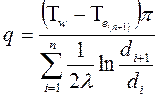 Проектируемый двигатель работает на криогенных компонентах топлива и перед запуском все магистрали вплоть до рубашки охлаждения камеры нахолаживаются. Компоненты топлива хранятся в баках при температуре, необходимой для поддержания определенных свойств данных веществ. Температура жидкого кислорода составляет порядка 73К, температура СПГ порядка 112К. Перед пуском двигателя компоненты проходят по магистралям все насосные ступени, захолаживая все агрегаты двигателя. Для экономии расхода жидкого компонентов, идущих на захоложивание можно ограничить теплопритоки к магистралям двигателя с помощью теплоизоляции. Данные меры необходимы для обслуживания двигателя рабочим персоналом, в целях предотвращения возможного контакта с сильно охлажденными поверхностями. Формула удельного теплового потока для случая многослойной цилиндрической стенки (рисунок 3.1) имеет следующий вид: