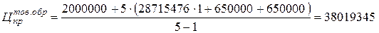 где СКВИ – стоимость КВИ; n = 5 – количество ЖРД в товарной партии; Сст.обр – цена стендового образца ЖРД; СКТИ-1, СКТИ-2 – стоимость проведения КТИ–1 и КТИ–2; kпр – коэффициент преемственности (предварительно равен 1).