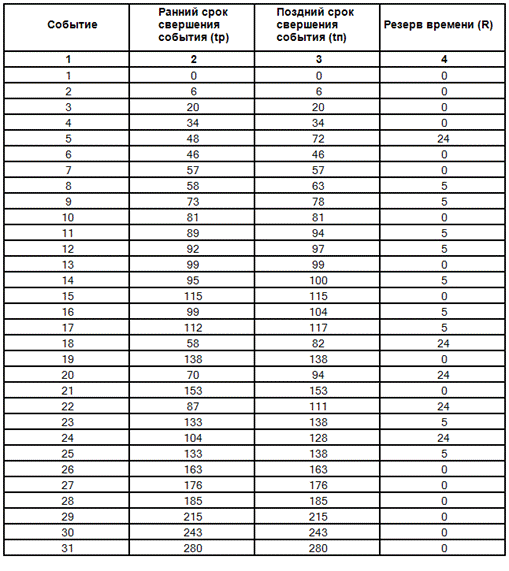 2) расчет сроков свершения событий и их резервов (рисунок 4.4);