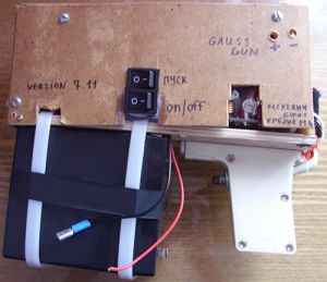 Раз уже начали встречаться в одной из статей с пушками гаусса, или по другому Гаусс Ган которые сделаны своими руками, в этой статье я публикую еще одну конструкцию и видиозаписи пушки Гаусса. Данная пушка Гаусса запитывается от аккумулятора в 12 Вольт. На картинке его видно. Данную статью так же можно использовать как инструкцию, так как в ней подробно описана сборка пушки.