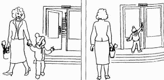 Начну с одного «секрета», который некоторым родителям может показаться неожиданным. Детям не только нужен порядок и правила поведения, они хотят и ждут их! Это делает их жизнь понятной и предсказуемой, создает чувство безопасности. Вам, должно быть, знакомо, как нервничает и выбивается из ритма жизни грудной ребенок, увезенный из дома на несколько часов «в гости», и как он успокаивается, попав домой, в привычную обстановку. Дети порой готовы поддерживать порядок больше, чем взрослые. Вспоминаю одну трогательную сцену. Мама с полуторагодовалым малышом вышла гулять. Открыв дверь подъезда, она так и оставила ее нараспашку. Сделав несколько шагов, малыш беспокойно оглянулся, вынул свою ручонку из руки мамы, нетвердыми шагами пошел к двери и, приложив некоторые усилия, закрыл ее. Порядок был восстановлен. Взглянув на маму, я увидела ее смущенную улыбку. Все, конечно, сталкивались с другим примером хорошего" консерватизма" детей, их стремлением повторять привычное: вы читаете дошкольнику книжку или рассказываете сказку. Прежде всего удивляет, что эти книжка или сказка ему не надоедают: он готов слушать их бесконечное число раз, хотя знает уже все наизусть. И попробуйте что‑ нибудь изменить в тексте — сразу же последует протест: «Нет, ты здесь пропустил», «Нет, он сказал не так, а вот так...» Приведу один случай из личного опыта, который показывает, как нарушение порядка может совершенно расстроить и даже напугать ребенка.