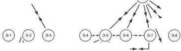 Рис. 3. Участие в переходах с работы на работу 3 Для того чтобы не усложнять диаграмму, замены между электромонтерами и П-3, который недолго находился в комнате наблюдения, и замена среди электромонтеров, когда один из них занимался пайкой, не отражены на данном рисунке. Эти исключения никоим образом не влияют на выводы, вытекающие из рисунка.