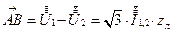Рассмотрим векторную диаграмму для линейных напряжений в начале и в конце линии и . Очевидно, что эта векторная диаграмма подобна диаграмме для фазных напряжений в начале и в конце линии и , рассмотренной ранее