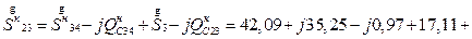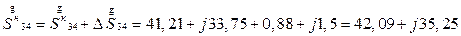 Расчёт окончен, проведение второй итерации не приводит к существенным уточнениям. При желании вторую итерацию можно было бы осуществить следующим образом: во-первых, принимаемые при первой итерации значения напряжений в узлах, равные Uном, следует заменить на полученные в расчёте величины; во-вторых, как и при первой итерации, рассчитывают, потоки и потери мощности в линиях, мощность источника питания и напряжения в узлах; в-третьих, следует принять за базовые значения потоков и потерь мощности, мощности источника питания и напряжения в узлах, найденные при второй итерации, и оценить погрешность расчётов, обусловленную пренебрежением второй итерацией. Степень уточнения расчётных величин при второй итерации определяется из соотношений, например, следующего вида