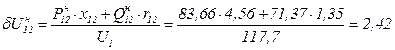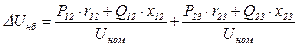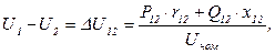 где Р12- активная мощность в линии; Q12- реактивная мощность в линии; r12 – активное сопротивление линии; x12- индуктивное сопротивление линии.