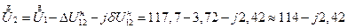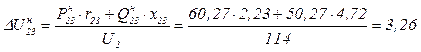 В сетях с напряжением 110 кВ и ниже поперечной составляющей падения напряжения можно пренебречь. Её учёт заметно не сказывается на точности расчёта режима сети. Так, в рассматриваемом примере, если учесть только продольную составляющую падения напряжения, напряжение в узле 2 будет