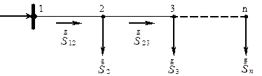 Определение наибольшей потери напряжения. Рассмотрим распределительную сеть, схема замещения которой приведена на рис. 3.13.