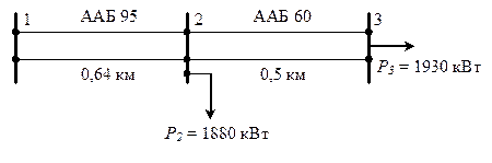 ААБ 95: r0 = 0, 326 Ом/км, x0 = 0, 083 Ом/км, ААБ 50: r0 = 0, 62 Ом/км, x0 = 0, 09 Ом/км.