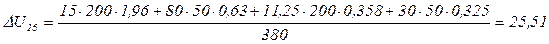 Нагрузки 3 и 7 имеют только активные составляющие. Найдем потерю напряжения в магистрали 15: