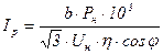 где Рн – номинальная мощность двигателя, кВт; Uн – номинальное линейное напряжение двигателя, В; b – коэффициент загрузки двигателя, равный отношению действительной потребной мощности для машины-орудия к номинальной мощности двигателя; cos j - коэффициент мощности двигателя при действительной нагрузке его; h - КПД двигателя при действительной нагрузке его. Пусковой ток двигателя зависит от его типа и принимается по заводским данным. Плавкий предохранитель должен быть выбран, исходя из двух условий: 1) при нормальной работе Iн ³ Iр; 2) при пуске двигателя где Iн – номинальный ток плавкой вставки. Из найденных величин нужно взять бό льшую и округлить до ближайшего значения номинального тока стандартных плавких вставок. Сечения проводов (кабелей), ответвлений следует выбирать также, исходя из двух условий: 1) допускаемый ток по проводу (кабелю) должен быть больше или равен длительному рабочему току двигателя, т.е. Iд ³ Iр; 2) сечение провода (кабеля) должно быть больше или равно сечению, соответствующему выбранному плавкому предохранителю (при заданных условиях работы). Например, для ответвления к электродвигателю, выполненного проводами с медными жилами с резиновой изоляцией, проложенными открыто на изолирующих опорах, при номинальном токе плавких вставок Iн = 80 А можно взять сечение проводов не менее 10 мм2. По головному участку Л1 магистрали проходит рабочий ток