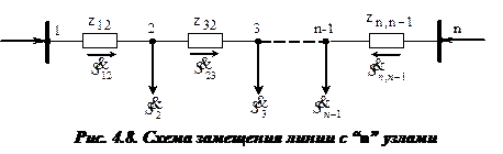Рис. 4.4. Схема замещения линии с четырьмя узлами
