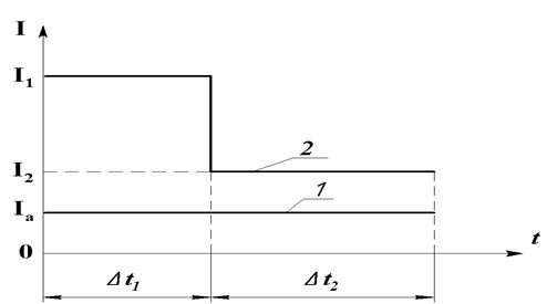 (7.15) где Ia – активная составляющая тока в сети питания, А; rл – сумма активного сопротивления провода, потери в котором рассчитываются, и активного сопротивления короткого замыкания трансформатора, Ом; ∆ t – учитываемый интервал времени, час. Потери электроэнергии для ступенчатого графика нагрузки (график 2 на рис.7.6) находятся из выражения