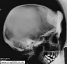 Рис..21. Компактная остеома. ОСТЕОХОНДРОМА| кроме костной содержит еще и хрящевую ткань. Рисунок остеохондромы| негомогенный, состоит из правильных костных островков, веерообразных пучков и перегородок, которые лежат на светлом фоне хряща. Часто внешний вид напоминает " цветную капусту". ХОНДРОМА. В зависимости от направления роста различают энхондромы| (в костномозговом канале), и экхондромы| (растут на поверхности кости). Чаще поражаются малые цилиндрические кости. На рентгенограмме каждая опухоль состоит из прозрачного хрящевого фона, на котором|каком| выделяются характерные островки, точечки из|с| извести|извести| или костного вещества. Ведущим синдромом энхондром| является вздутие, внешние контуры хондромы всегда четкие, непрерывные пока|покуда| опухоль остается доброкачественной. |изощрен, изящЭкхондромы| раздвигают противоположные отделы коркового вещества, корковый слой утонченный. Хондромы осложняются|усложняются| патологическими переломами и часто переходят в злокачественные опухоли.
