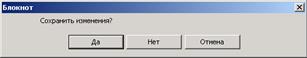 3) Заполнить поле И мя файла. 4) Нажать кнопку С охранить. Закрыть - закрытие файла. При выполнении этой операции не происходит выхода из Блокнот. Если изменения в документе не были сохранены, то будет выведено предложение сделать это: