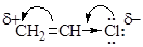 Рассмотрим химические свойства этих соединений в двух аспектах: а) влияние двойной связи на реакционную способность галогена, б) влияние галогена на реакционную способность двойной связи. Галогенпроизводные группы а) отличаются малой подвижностью галогена, что объясняется эффектом сопряжения неподеленной пары электронов галогена с электронами кратной связи, приводящее к изменению кратности связи (больше 1) С-Cl, увеличению энергии связи и уменьшению ее длины.
