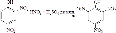 При нитровании фенола тетраоксидом диазота в инертном растворителе (бензол, дихлорэтан) образуется 2, 4-динитрофенол: