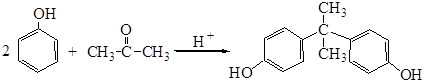 В результате присоединения по всем доступным о - и п -положениям образуется трехмерный термореактивный полимер – бакелит. Бакелит отличается высоким электрическим сопротивлением и термостойкостью. Это один из первых промышленных полимеров. Реакция фенола с ацетоном в присутствии минеральной кислоты приводит к получению бисфенола: