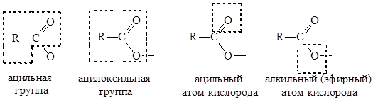 Кислотные остатки RCO- (ацилы) имеют следующие названия: