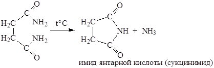 Диссоциация первой карбоксильной группы протекает легче. Это особенно заметно для щавелевой и малоновой кислот и связано с тем, что неионизированная карбоксильная группа проявляет электроноакцепторный индуктивный эффект по отношению к ионизированной карбоксильной группе и стабилизирует тем самым образующийся карбоксилат-анион. Дикарбоновые кислоты, в которых две карбоксильные группы разделены цепью из шести и более атомов проявляют свойства, аналогичные монокарбоновым кислотам. Механизм реакций образования диамидов, сложных диэфиров и др., для дикарбоновых кислот тот же, что и для монокарбоновых кислот. 1. Отношение к нагреванию. Примером необычного поведения дикарбоновых кислот, обусловленного наличием двух карбоксильных групп, могут служить реакции, протекающие при нагревании. Так, щавелевая кислота при нагревании до 150°С отщепляет диоксид углерода с образованием муравьиной кислоты: НООС–СООН ® НСООН + СО2 Малоновая кислота и ее моно- и дизамещенные гомологи, при нагревании несколько выше их температур плавления отщепляет СО2 с образованием уксусной кислоты или ее моно- и дизамещенных гомологов: НООС–СН2–СООН ® СН3СООН + СО2 НООС-СН(СН3)-СООН ® СН3СН2СООН + СО2 НООС-С(СН3)2-СООН ® (СН3)2СНСООН + СО2 Дикарбоновые кислоты, содержащие четыре или пять атомов углерода между карбоксильными группами (янтарная и глутаровая кислоты) при нагревании отщепляют воду и образуют циклические ангидриды: