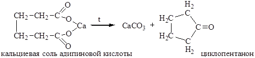 2. Пиролиз кальциевых и бариевых солей. При пиролизе кальциевых или бариевых солей адипиновой, пимелиновой и пробковой кислот происходит отщепление СО2 и образуются циклические кетоны: