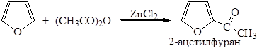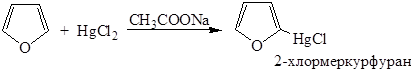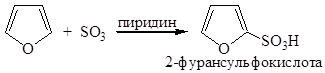 Электрофильное замещение в фуране и его производных Реакции протекают в более мягких условиях, чем для тиофена. Часто эти реакции сопровождаются реакцией присоединения. Бромирование