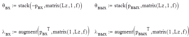 Столбцы матрицы главных сечений, соответствующие входному и выходному ребрам