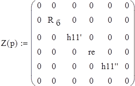 Матрицы-строки, выделяющие токи входного и выходного ребер из вектора токов z-ребер