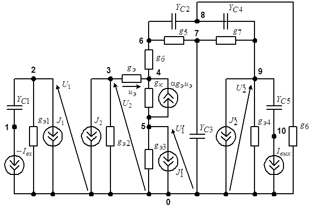 Определение схемных функций методом эквивалентных схем на основе координатных уравнений для координат (КК-уравнений) в узловом координатном базисе.