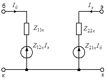 Рис. 6.23. Эквивалентная схема биполярного транзистора с общим коллектором, приведенная к системе z-параметров