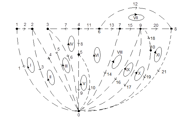 Рис. 6.27. Полюсный граф избирательного усилителя с канонической системой независимых контуров